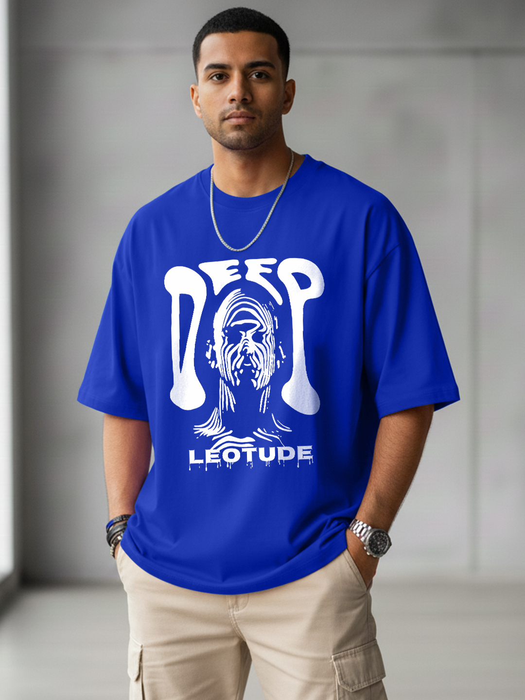 Leotude Men Black Oversized Cotton T-Shirt with Lion Graphic Print