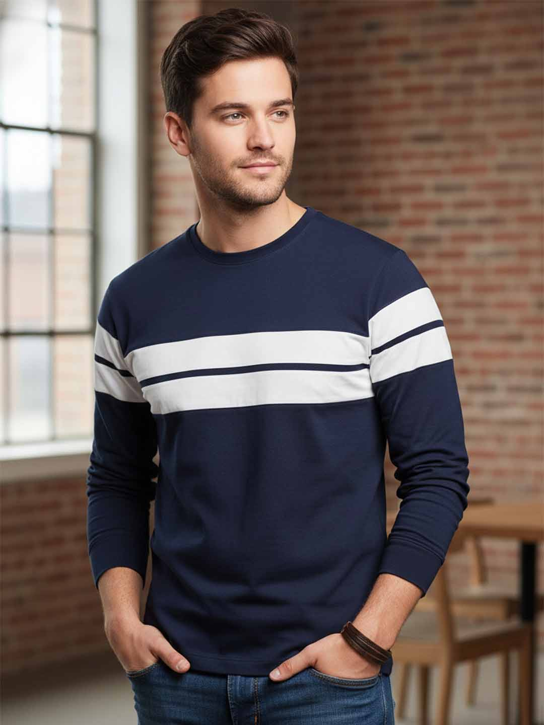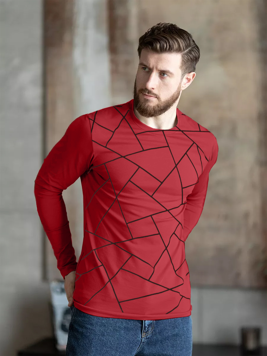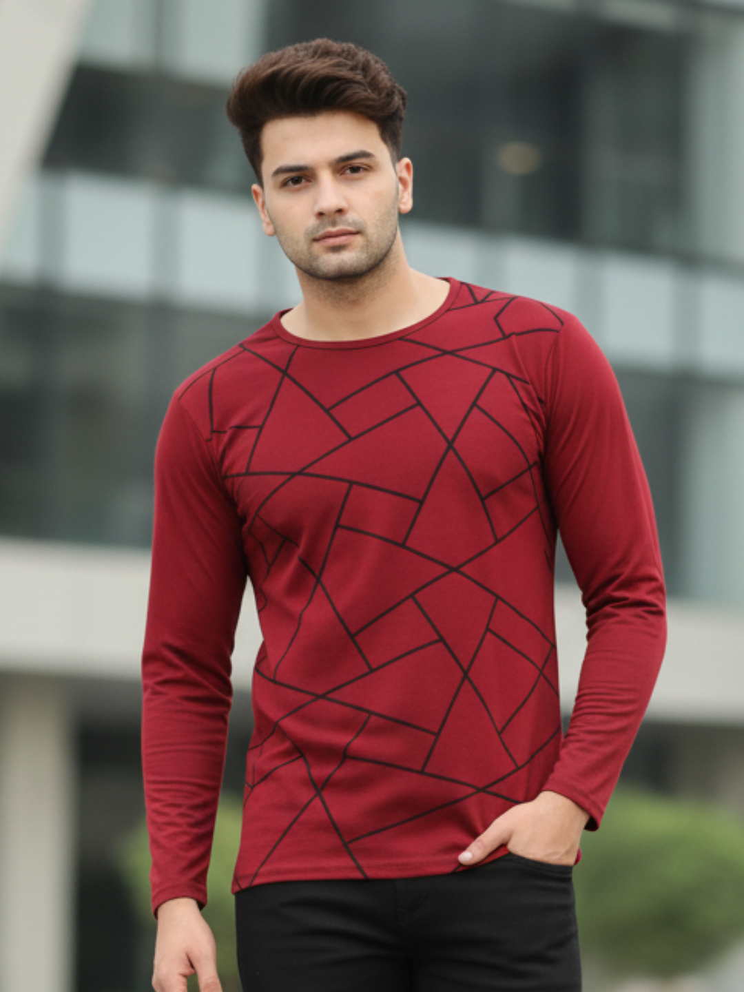 Men Printed Full Sleeve Round Neck T-Shirt