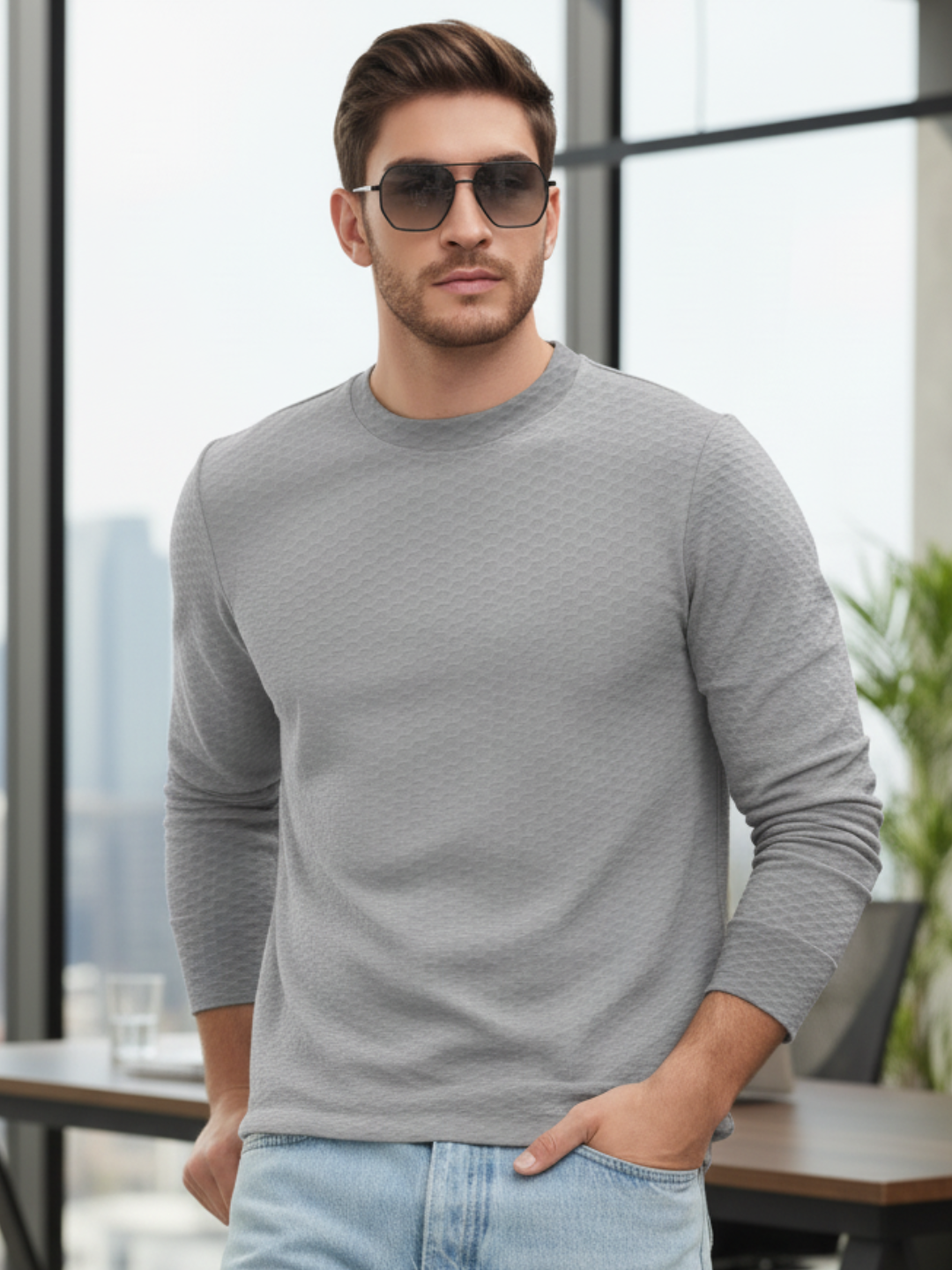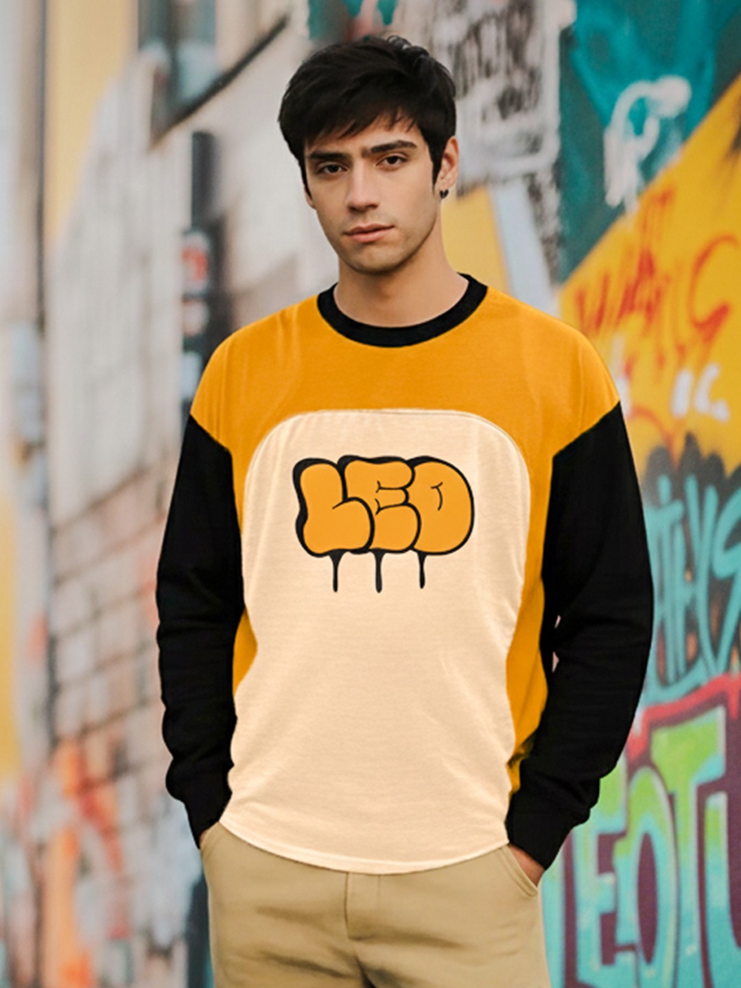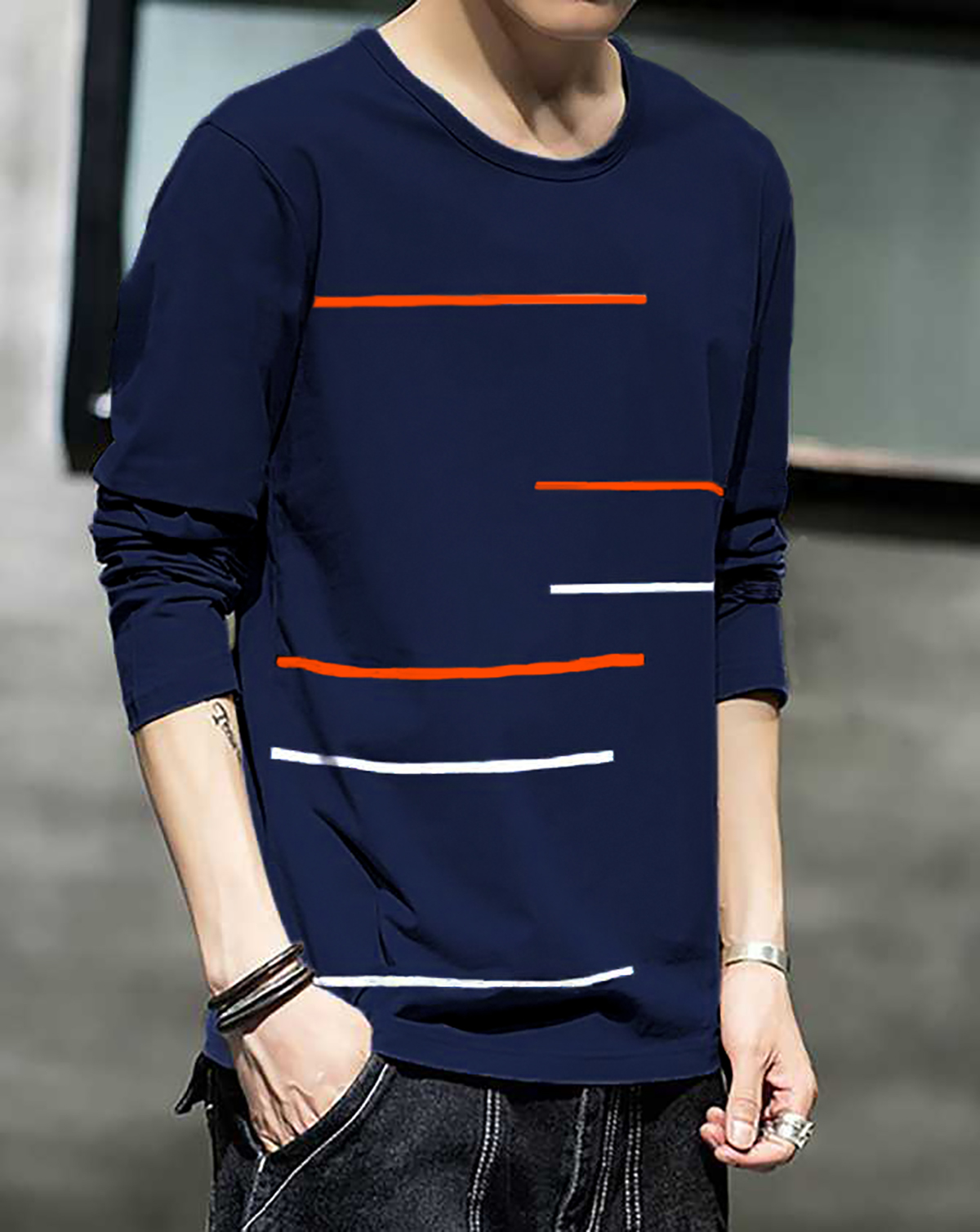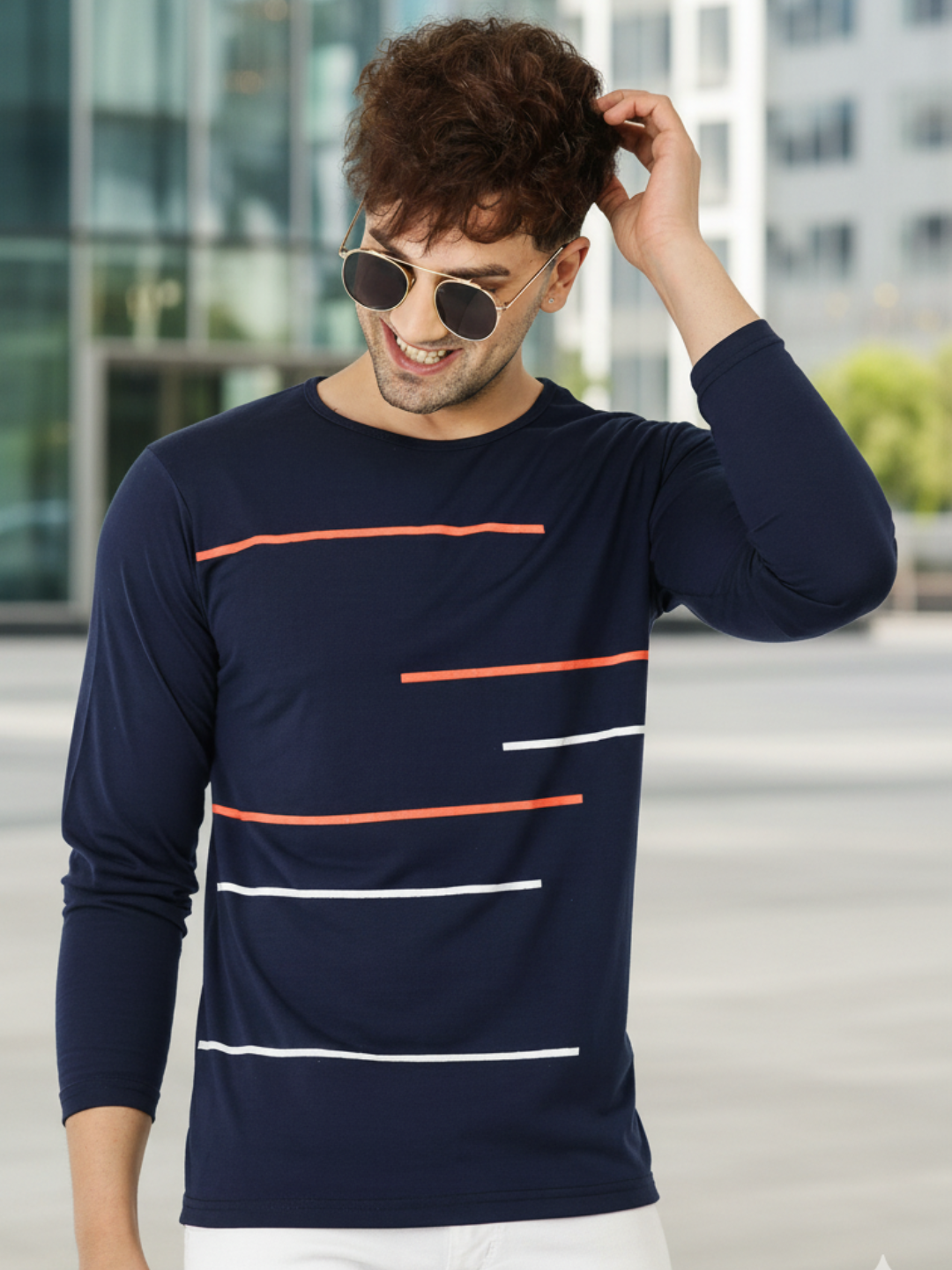 Men Printed Full Sleeve Round Neck T-Shirt