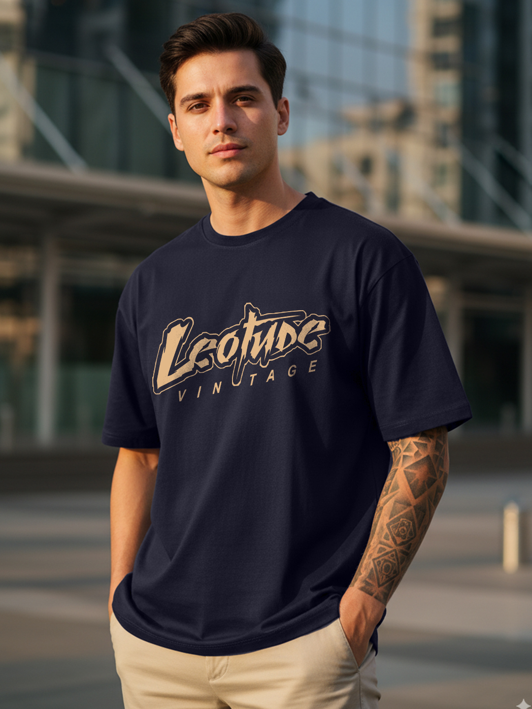Men Warrior Beige Oversized T-Shirt