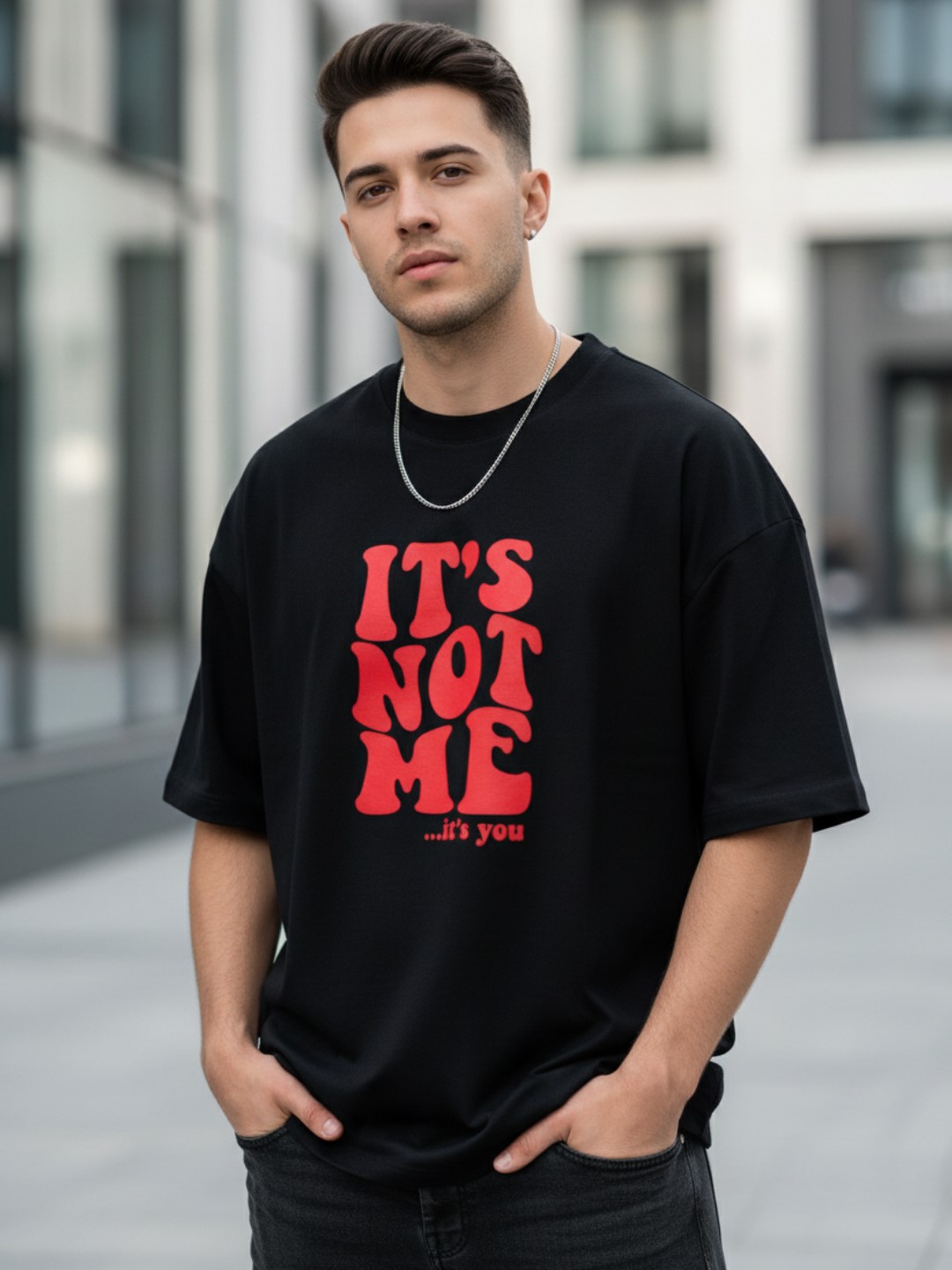Men IDC Black Oversized T-Shirt