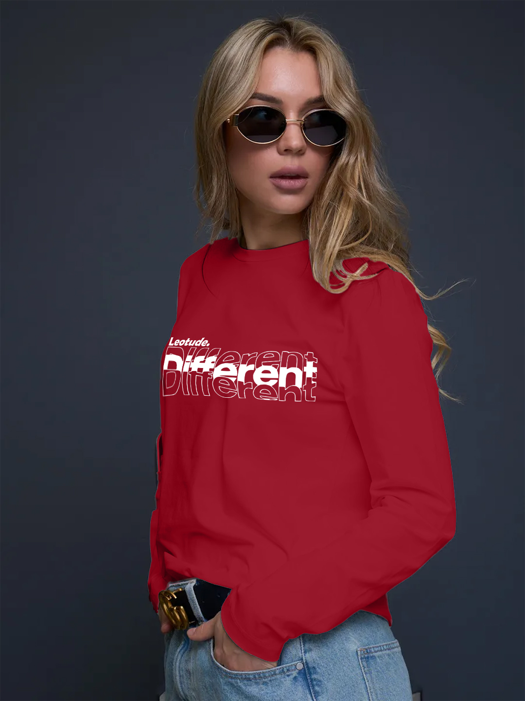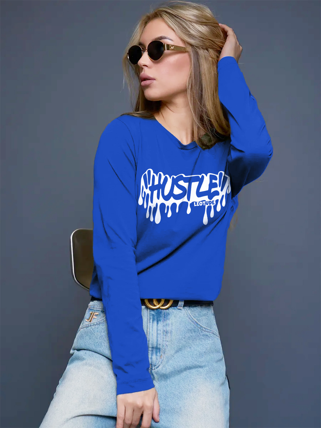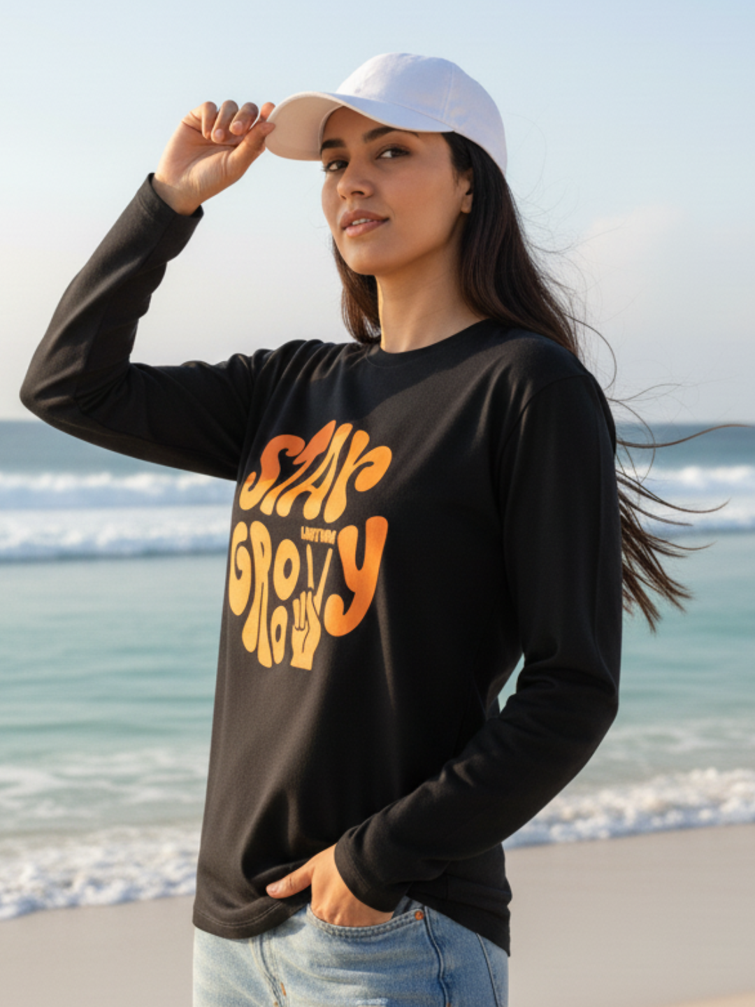Women Boyfriend Fit Printed Full Sleeve Round Neck T-Shirt