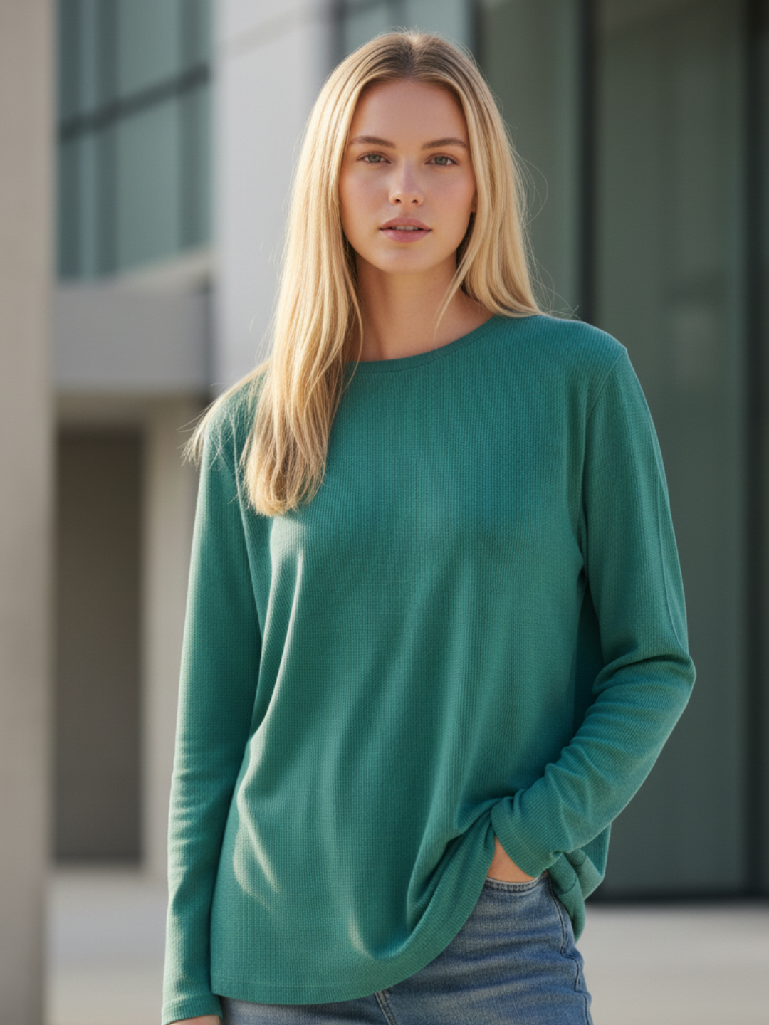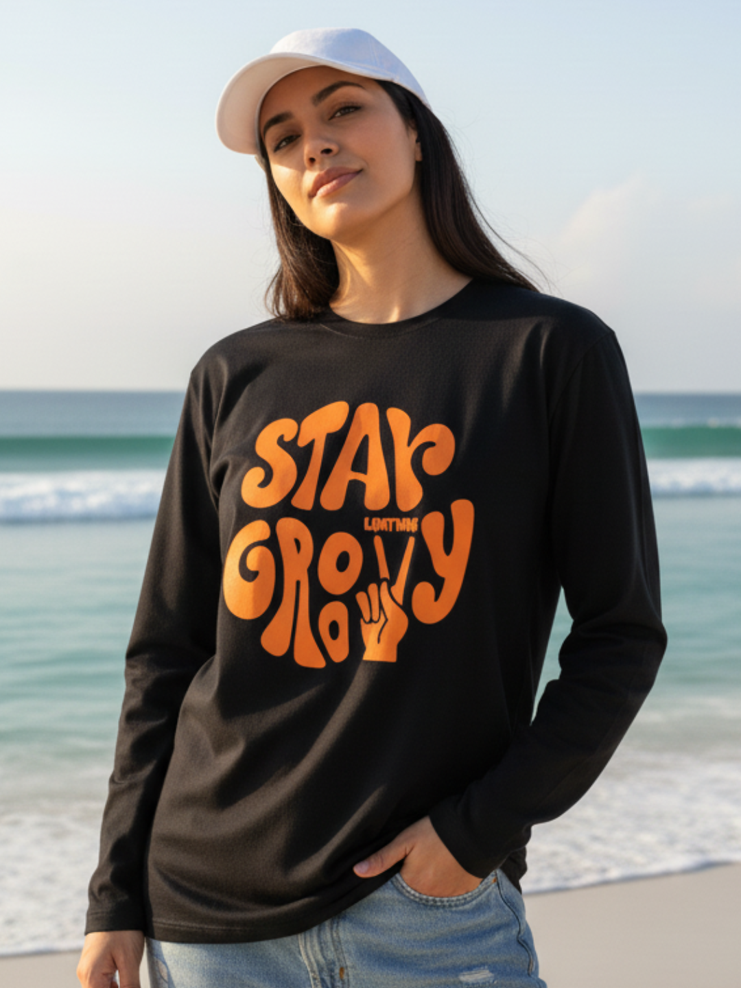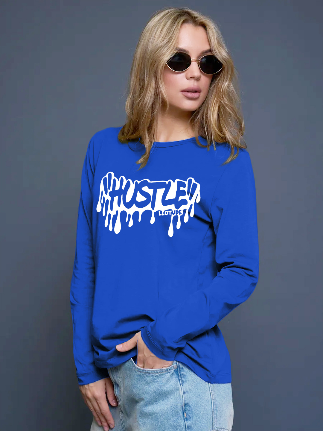 Women Boyfriend Fit Printed Full Sleeve Round Neck T-Shirt