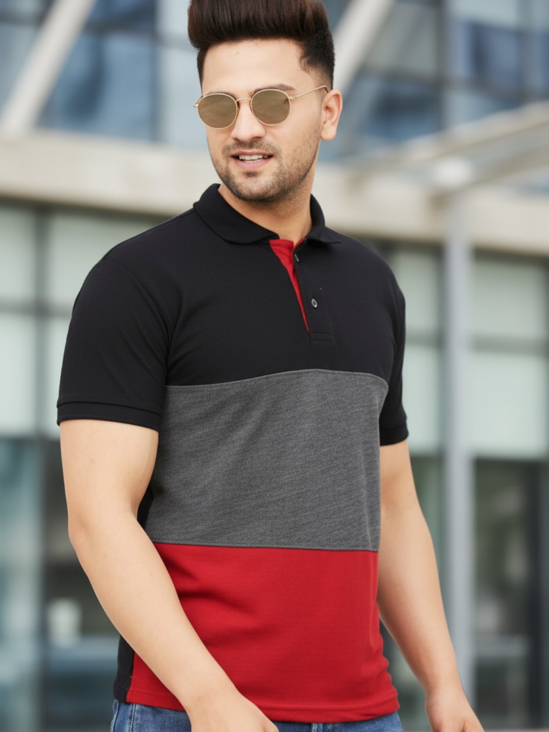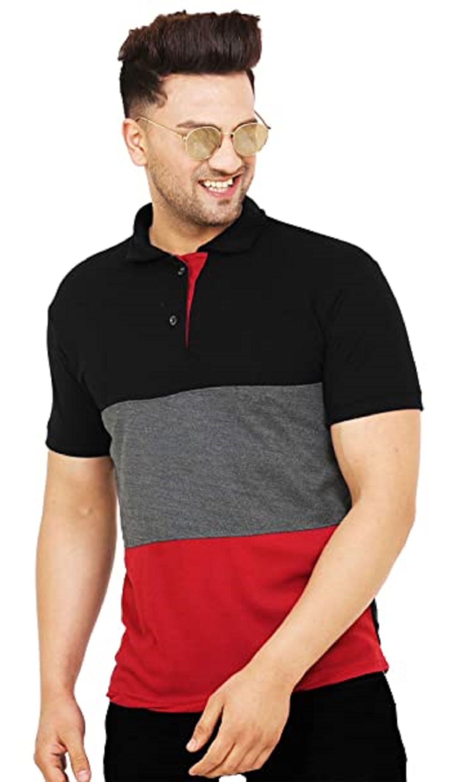 Men Colorblock Navy White Polo T-Shirt