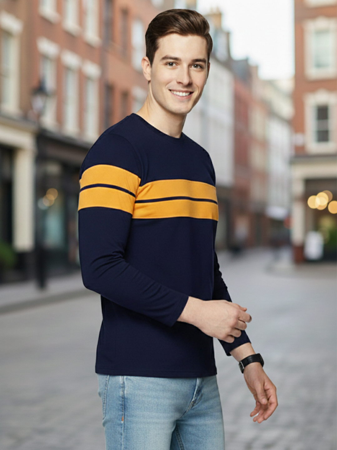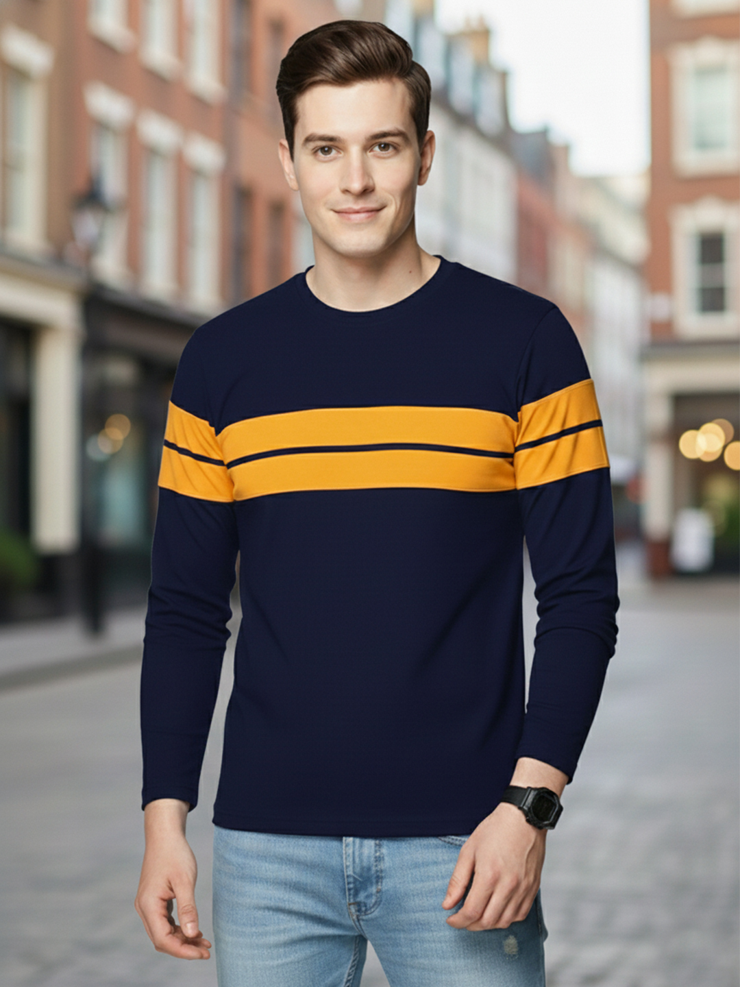 Men Printed Full Sleeve Round Neck T-Shirt