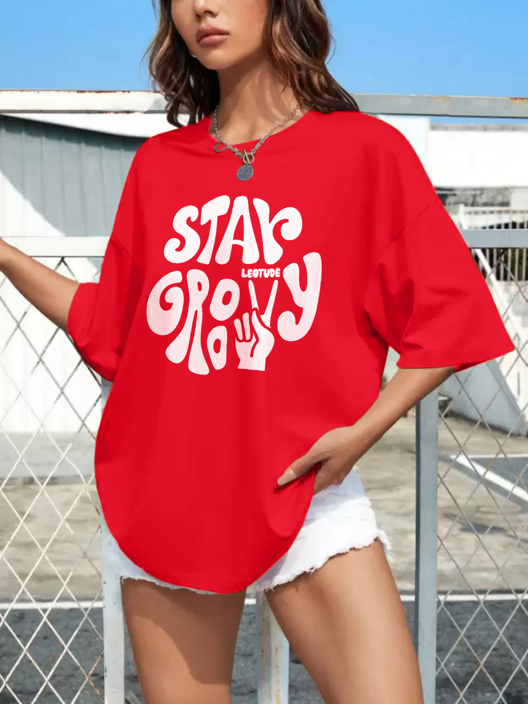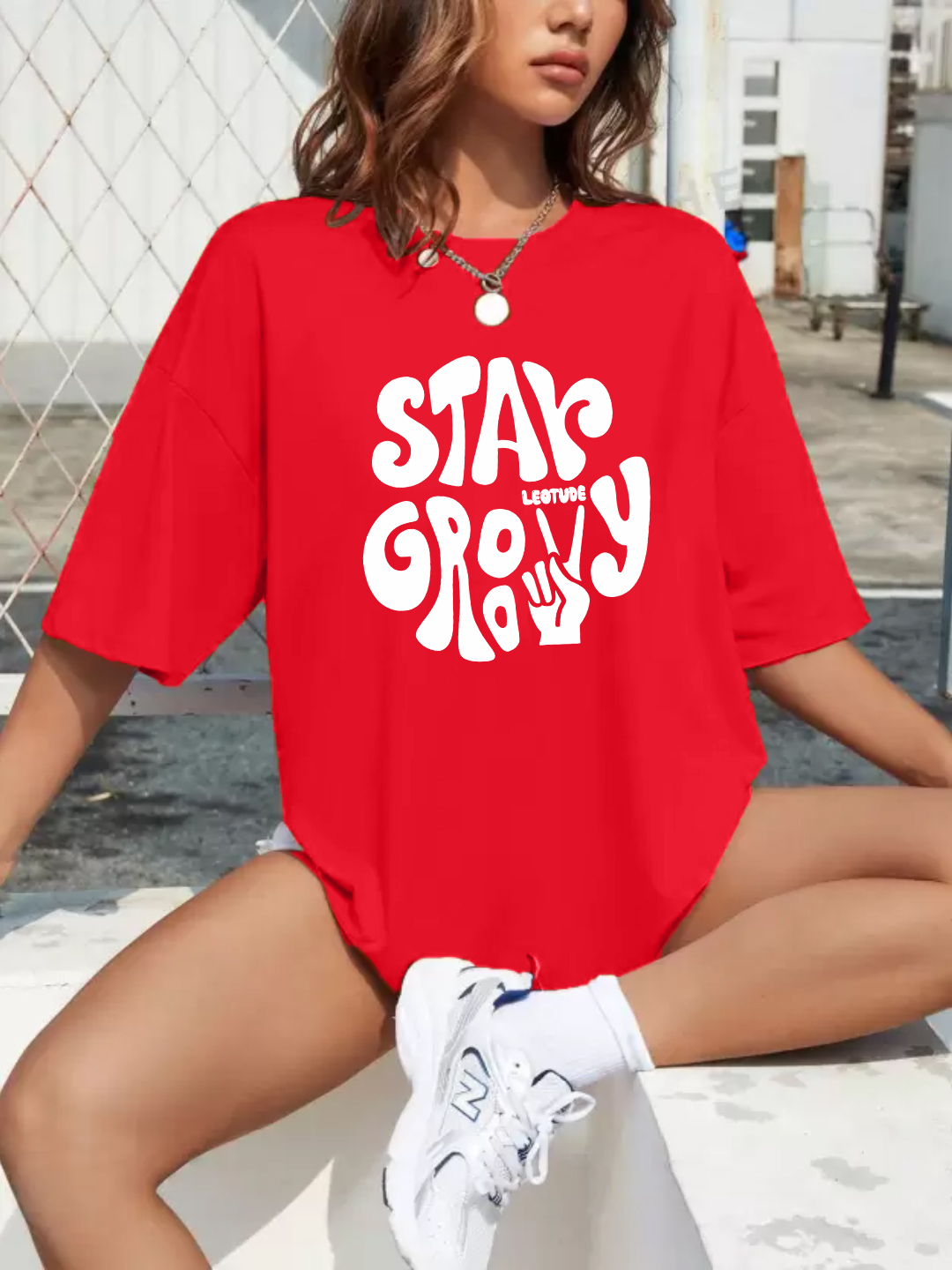 Women Stay Groovy Rust Orange Oversized T-Shirt